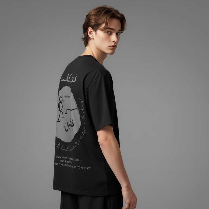 This tee is a wearable dua — a reminder to walk forward in life without fear, relying fully on Allah’s plan. Its oversized cut blends spiritual depth with a modern streetwear vibe, perfect for Gen Z Muslims seeking halal fashion with meaning.